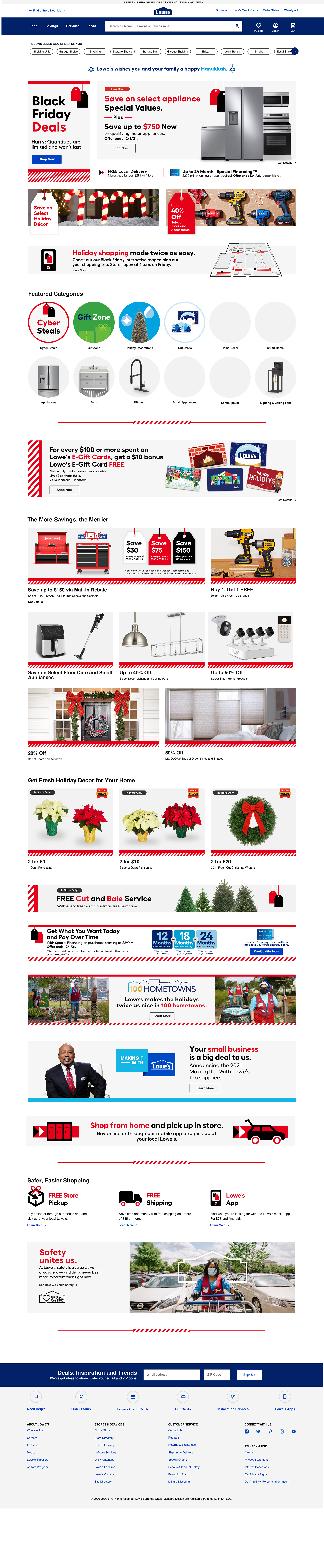Desktop and Mobile versions of the Lowe's Home Improvement homepage for the 2021 Black Friday event. I designed every banner on the page while keeping the holistic flow of the customer journey in mind.