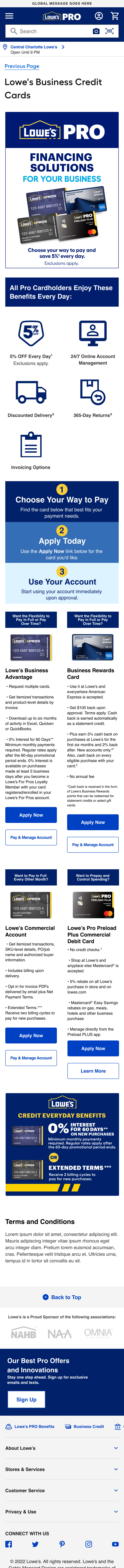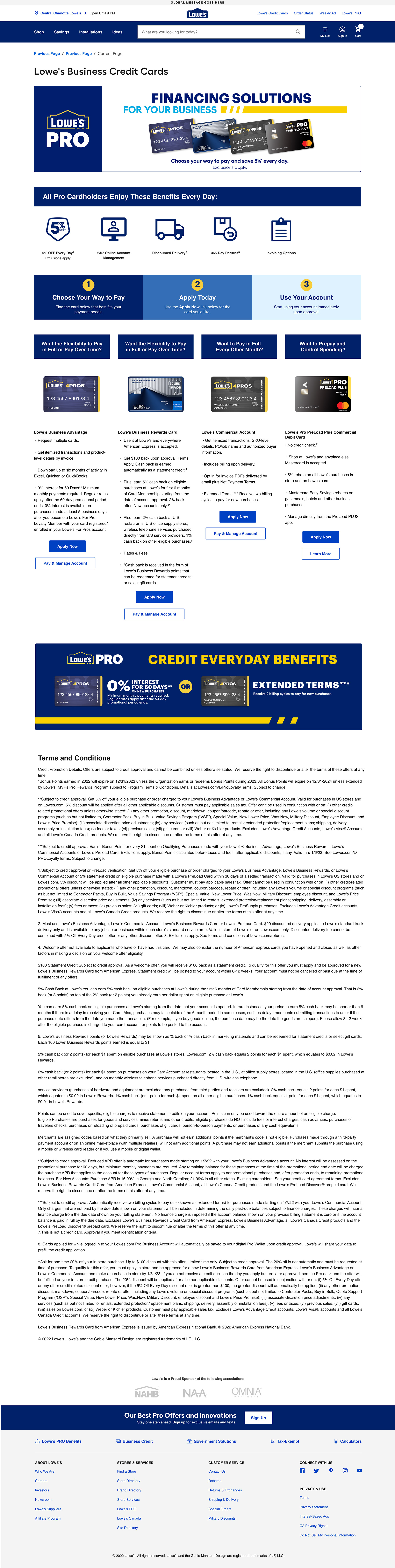 Lowe's Business Credit Center Landing Page