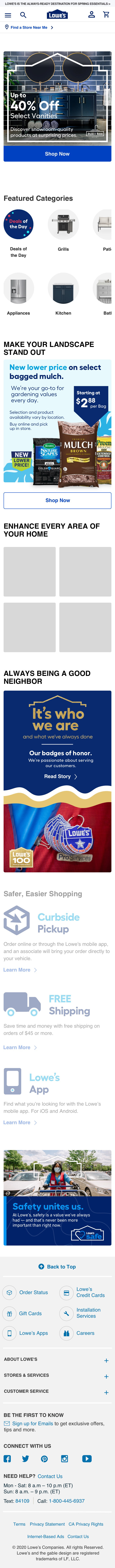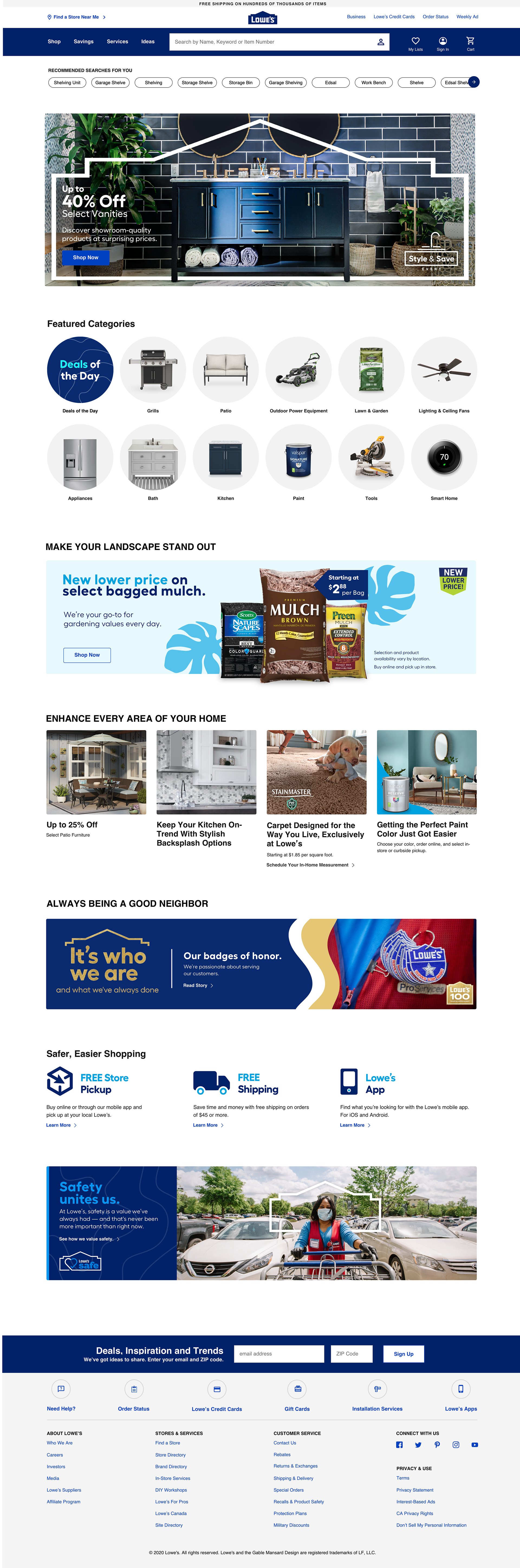 Desktop and Mobile versions of the Lowe's Home Improvement homepage during summer 2021. I designed every banner on the page while keeping the holistic flow of the customer journey in mind.